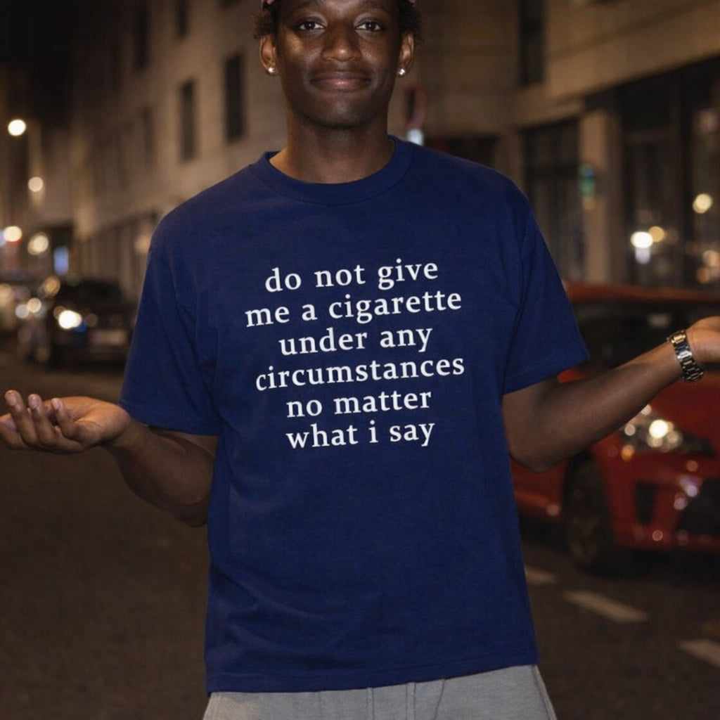 Kreatives Design: Textdruck „Gib mir keine Zigarette“